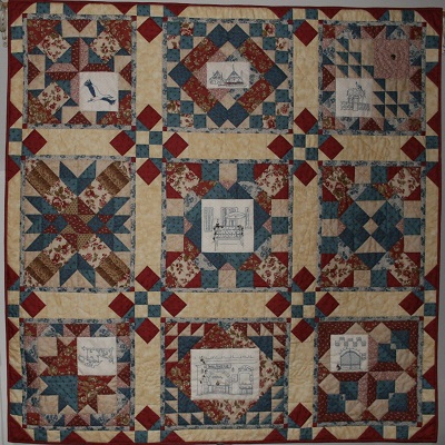 This is Souvenir d Alsace first edition. The second edition (Souvenir d Alsace Deux) has started. Now using reproduction fabrics of around 1820 of Moda Betsy Cutchian: Rachel Remembered.