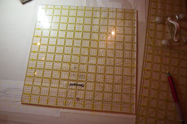 De blokken worden volgens de Foundation Paperpiece methode gemaakt (dus alles op de naaimachine).