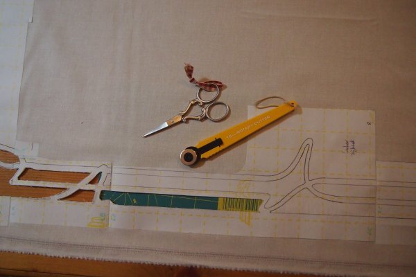 En dan begint de uitdaging. Het uitsnijden van de vormen gaat het gemakkelijkst met een 18mm rolmes van Olfa. Als snijmat gebruiken we een mini snijmat welke telkens meeverhuist naar het volgende te snijden deel. De hoekjes knippen met een appliquick schaartje, superscherp en het heeft mini tandjes zodat de boel niet verschuift.
