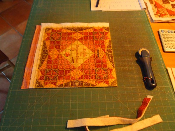 de volgende twee randen eraf. Dit is het eerste blok precies 12 1/4 x 12 1/4 inch.