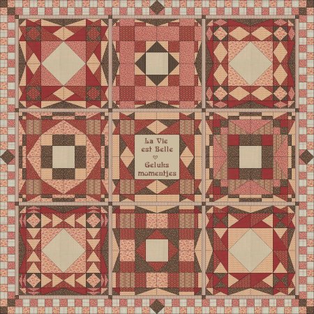 10 maanden, 9 blokken met Bonheur du Jour "knopen" en een sashing / border aflevering.