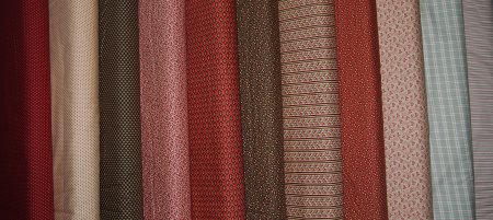 Een van de middenblokken (2, 5 of 8).De achterkant-stof strip van 1 inch en de dubbel gevouwen 1 1/2 inch strip van de sashing.