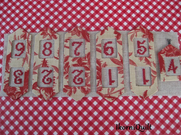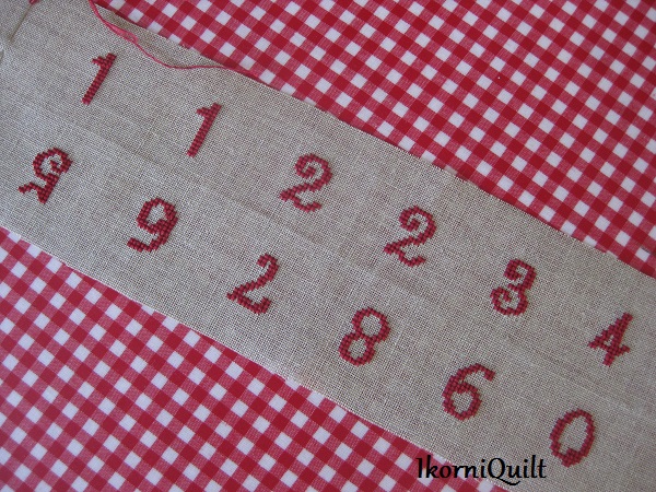Eerst worden alle cijfers geborduurd. Let op de hele strook precies zo borduren als het voorbeeld.