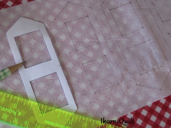 De raampjes aftekenen op de vlieseline. Gebruik een lineaal om het mooi strak te krijgen