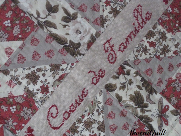 De quilt krijgt een persoonlijke tint door toevoeging van initialen en of data in het centrumblok.