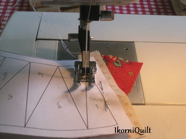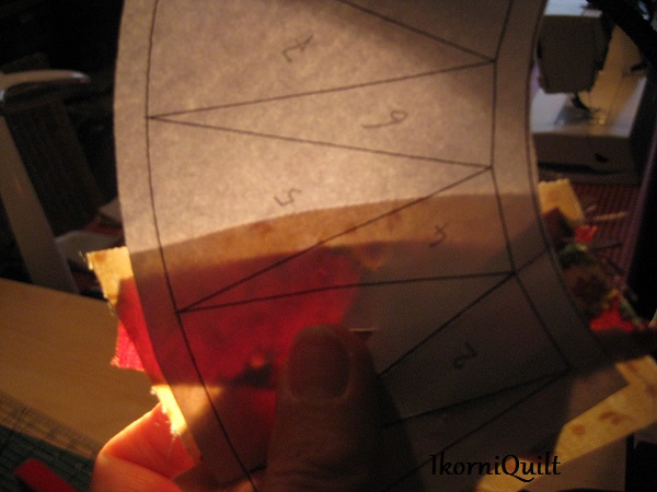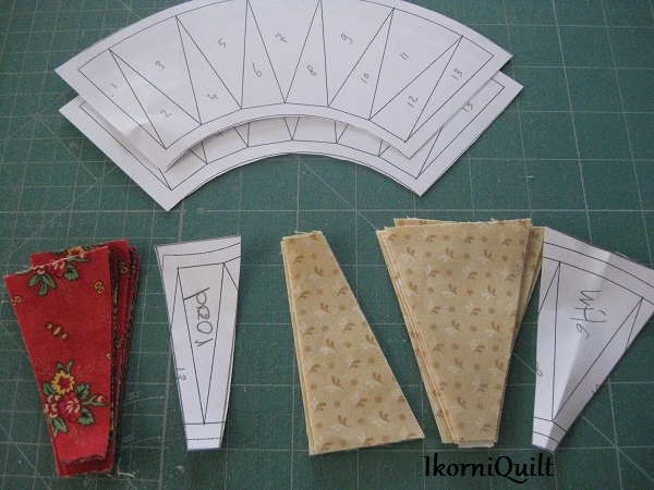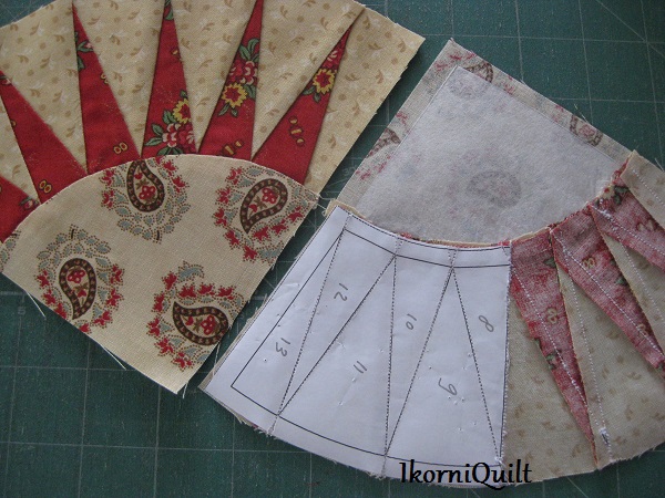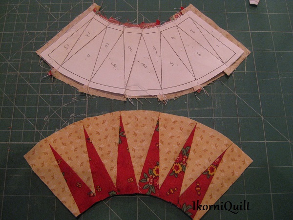 De zonnestralen paperpiecen. Start bij nummer 1 en loop zo de hele boog af.