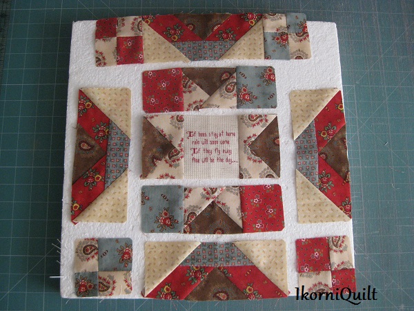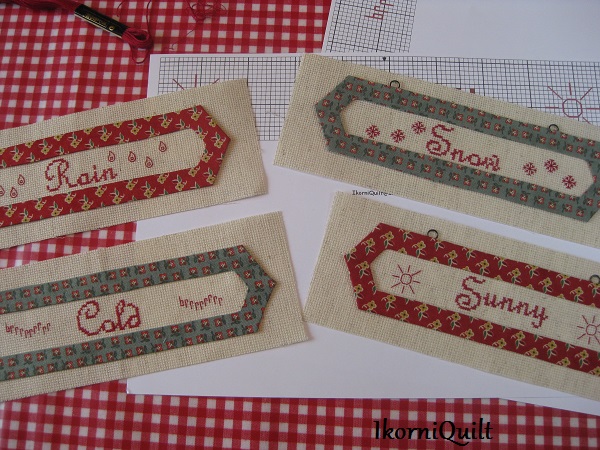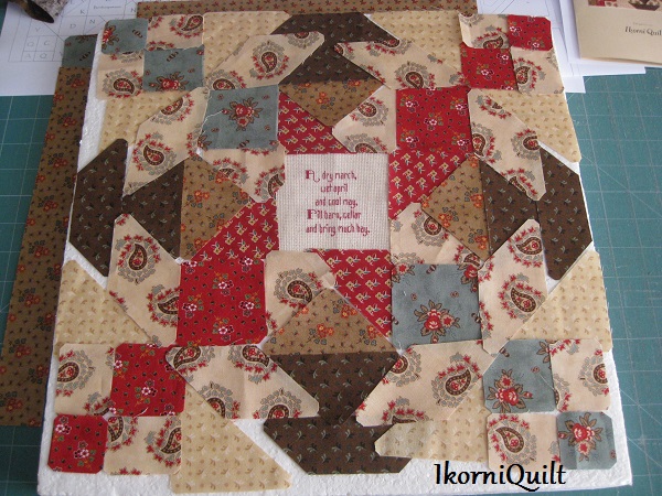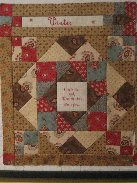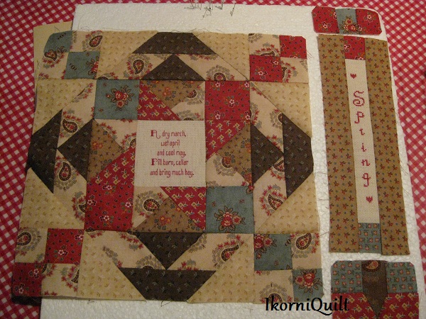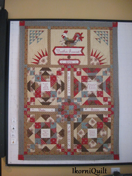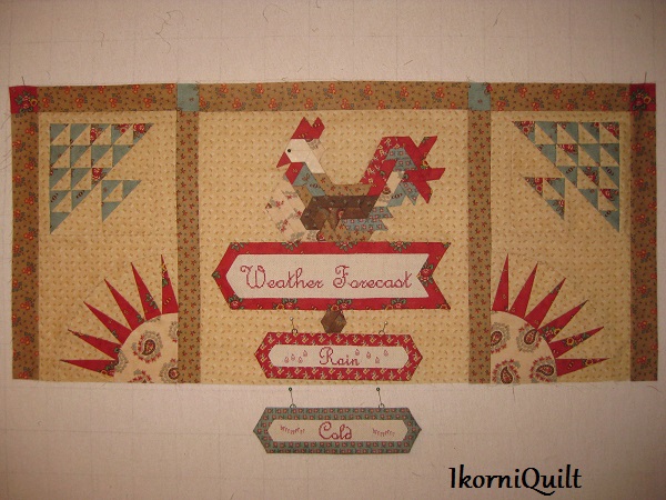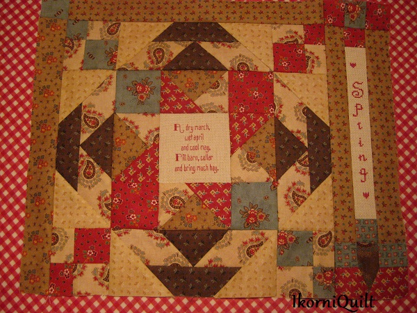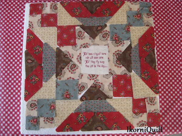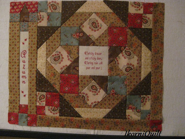 De BOM is een combinatie van patchwork met kruissteek/ stiksteek paneeltjes met weer wetenswaardigheden.