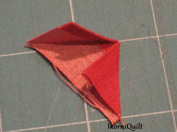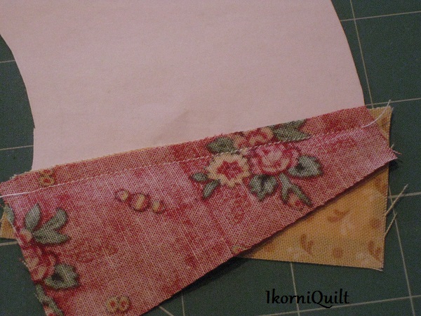De inzet van de ruit: speld eerst de ene kant vast en naai deze vast daarna de andere zijde .