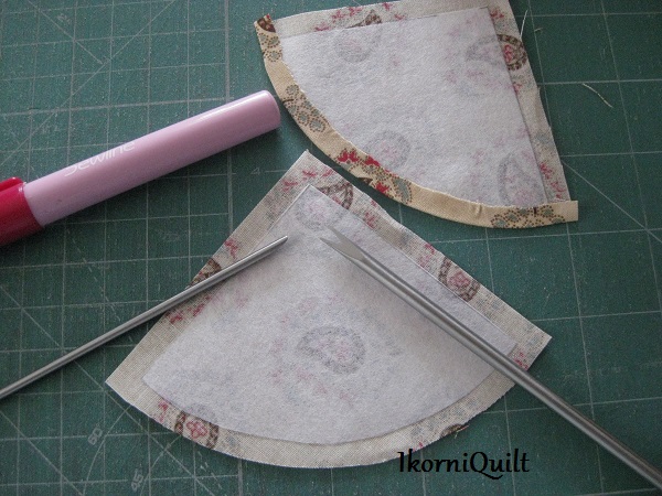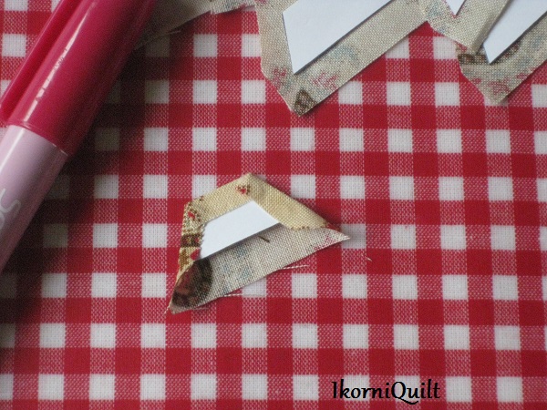Het framewerk van de bordjes maken door de stof om de vlieseline (H250) te plakken met de lijmstift.