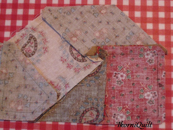 De stofjes aan elkaar zetten in opgedeelde stukken..