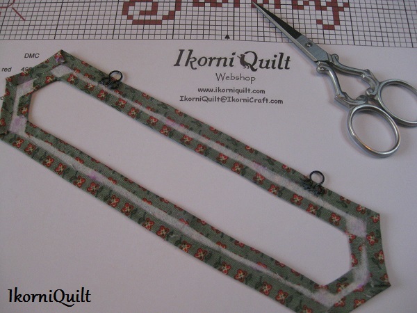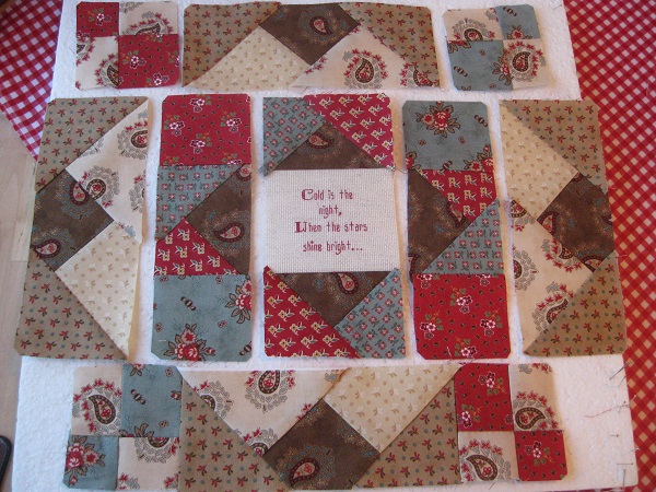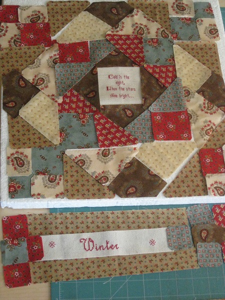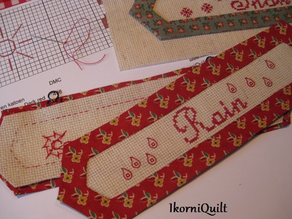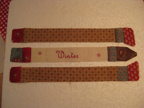 De borduurstrook winter met de bijbehorende stofjes aan elkaar zetten.l